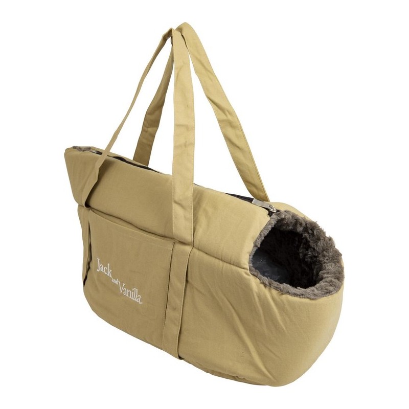 Deze mooie draagtas is uitermate geschikt om op stap te gaan met uw kat of kleine hond. Duurzame stof aan de buitenkant, zachte warme stof aan de binnenkant. Wanneer je de zak helemaal openritst, kan je hem ook als warm mandje gebruiken.